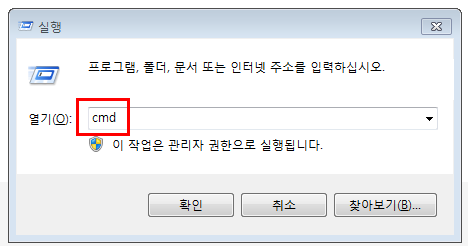실행창을 열었다면 cmd를 입력해