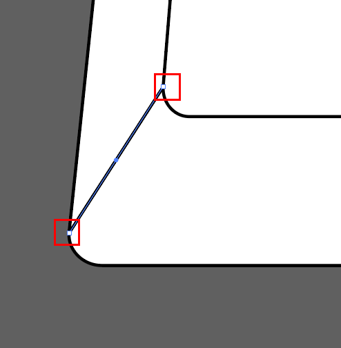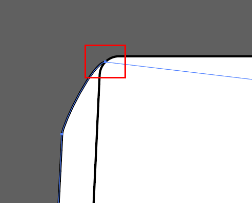 모서리의 곡선 부분 중 위쪽만을 잡아