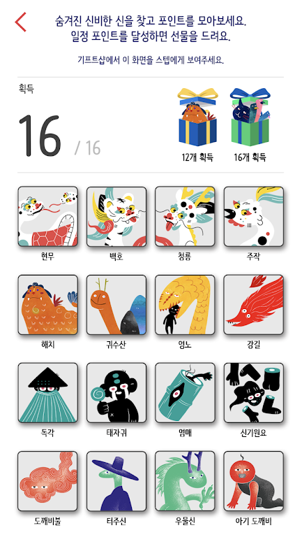 16가지의 숨겨진 신을 찾으면 선물을 받을 수 있어요.