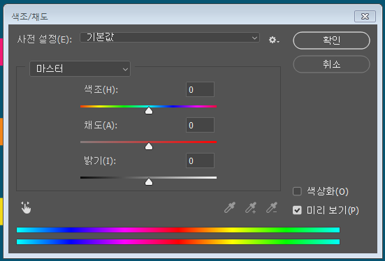첫 번째 방법은 색조/채도입니다.