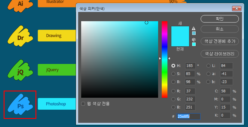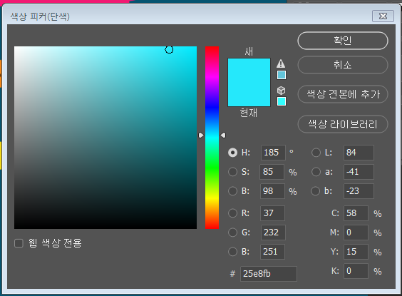 *색상 피커 창이 떠있으면 화면을 클릭할 때 자동으로 스포이드가 됩니다.