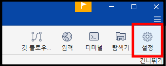 오른쪽 상단에 설정 아이콘을 클릭합니다.