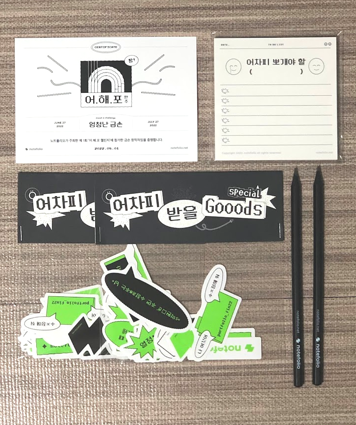 이상으로 노트폴리오 어.해.포 챌린지 굿즈 후기였습니다.