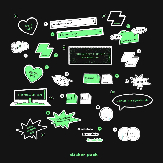 노트폴리오 로고와 어.해.포 포인트색이 잘 살아있어요.