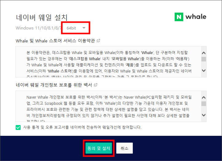 아래 동의 및 설치 버튼을 클릭합니다.