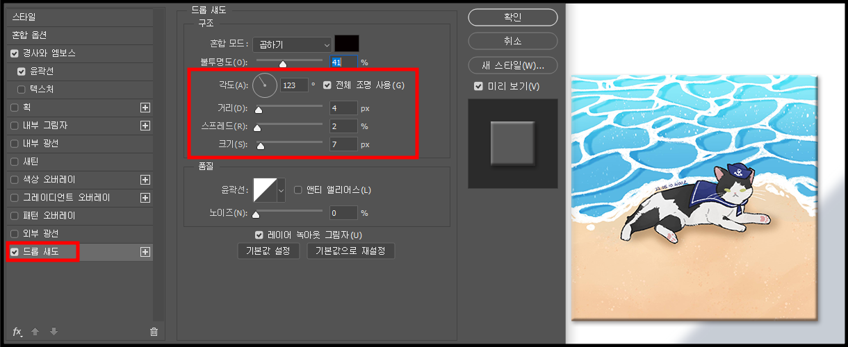 레이어 스타일에서는 드롭 섀도라고 표시되어있습니다.