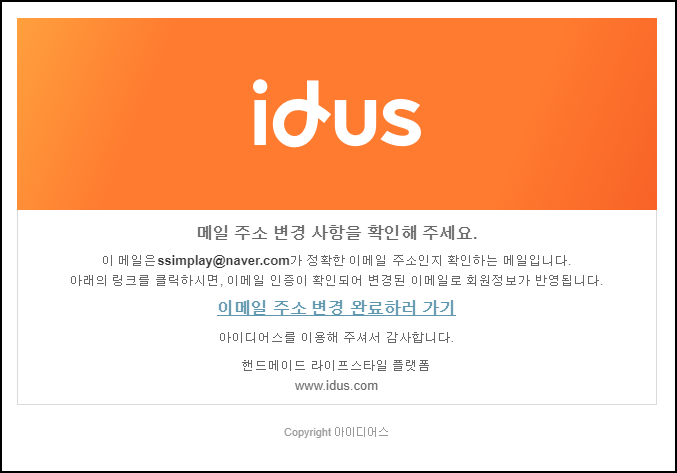 구매할 때 들어가는 아이디어스 계정도 이메일이 변경되는 점 참고해주세요.
