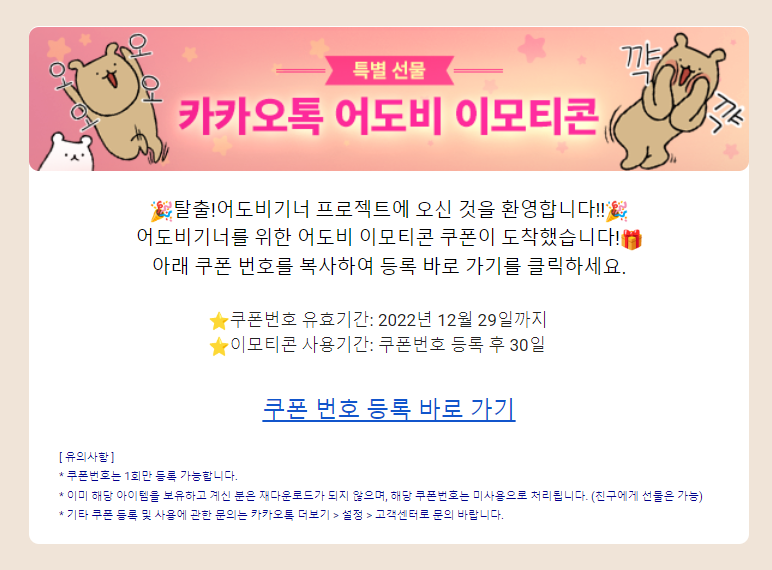 카카오톡 이모티콘까지 받을 수 있답니다!