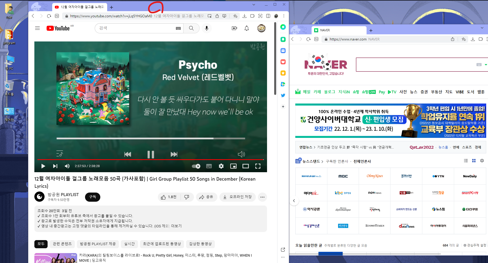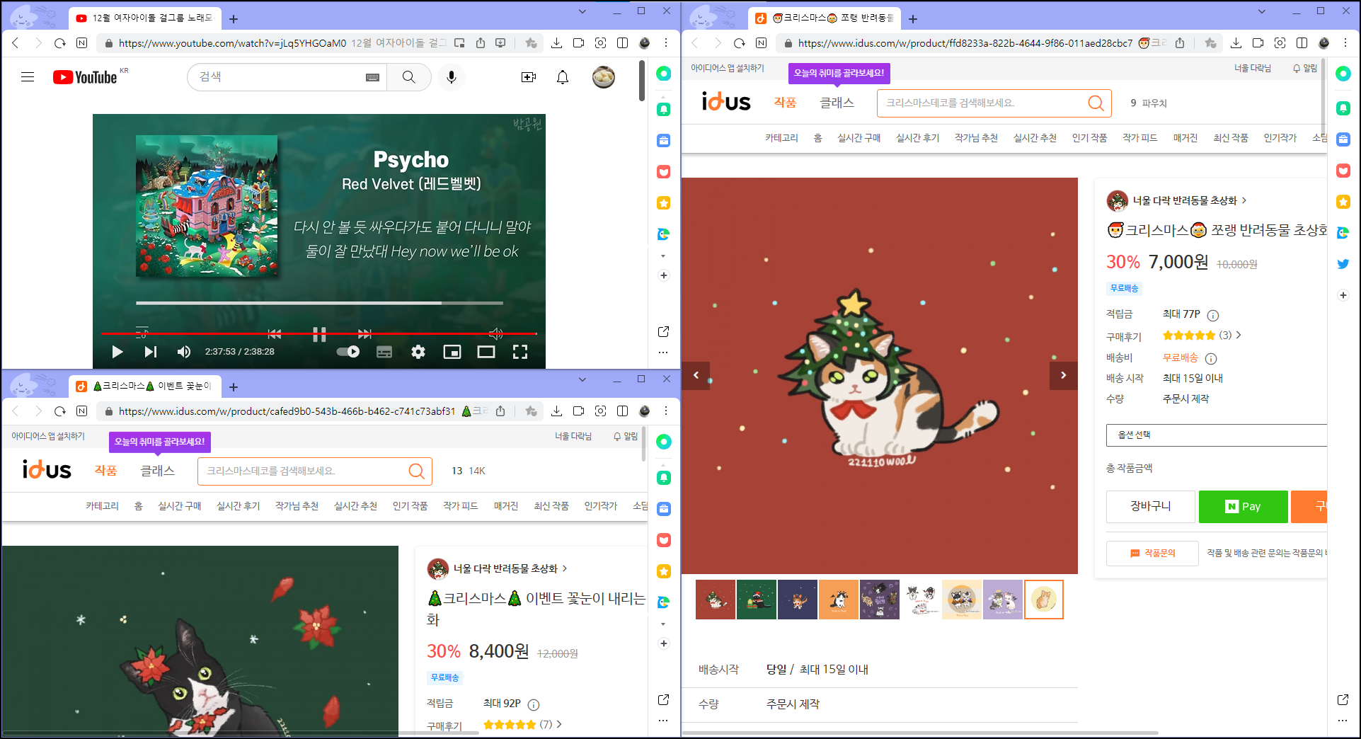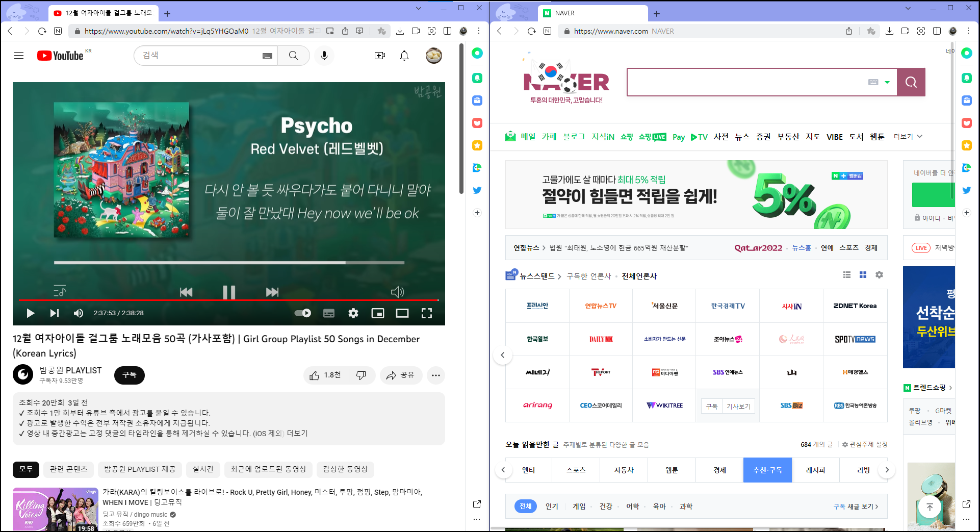단축키 [Window + ←(방향키)]로 화면을 분할해줍니다.