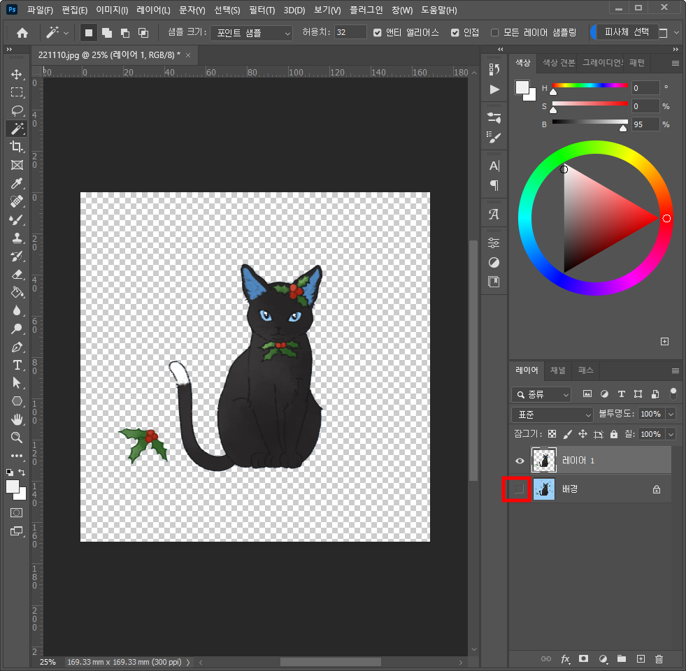 배경 레이어 눈을 끄면