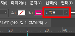사각형 도구 외에도 펜툴, 직접 선택툴 등을 선택하면 상단바에서 조절이 가능합니다.