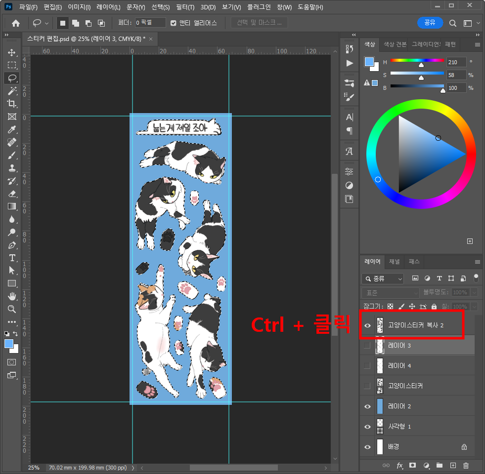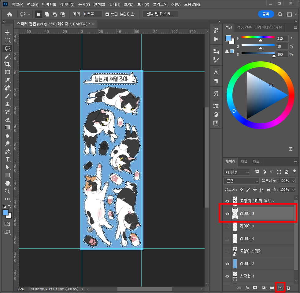 그러니 미리 스티커 이미지를 모두 한 레이어로 합쳐주세요.