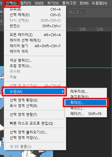 - [선택 > 수정 > 확대]