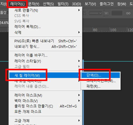 [레이어 > 새 칠 레이어 > 단색] 메뉴를 선택