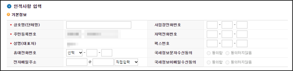 주민등록번호와 이름이 자동으로 입력되어 있습니다.
