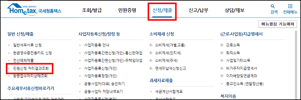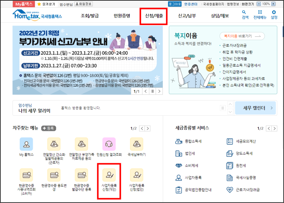 홈택스에 접속해