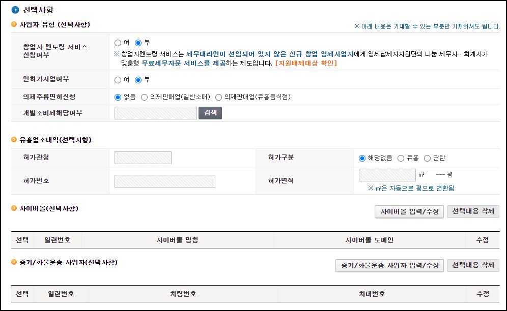 3. 사업자 등록 신청서 작성 2