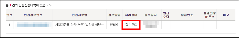 그러면 이렇게 사업자등록 신청 완료
