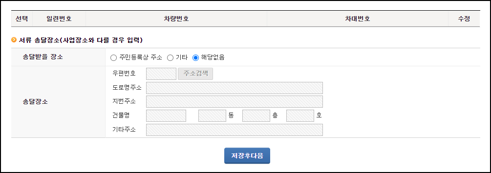 마지막으로 서류를 받을 장소를 입력해 주시고