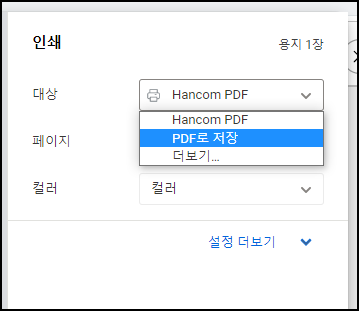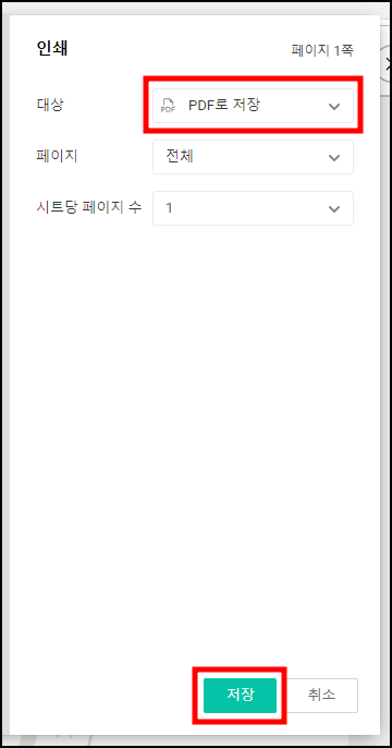 [대상 > PDF로 저장]을 선택할 수 있습니다.