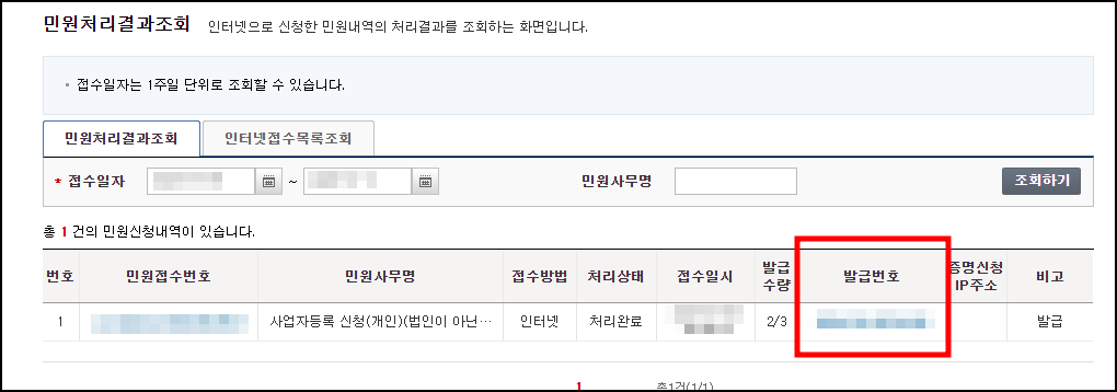 제가 신규라서 사업자등록증명을 해주신 분이랑 조금 다를 수도 있어요.그래도 당황하지 마시고 발급번호를 클릭해 줍니다.