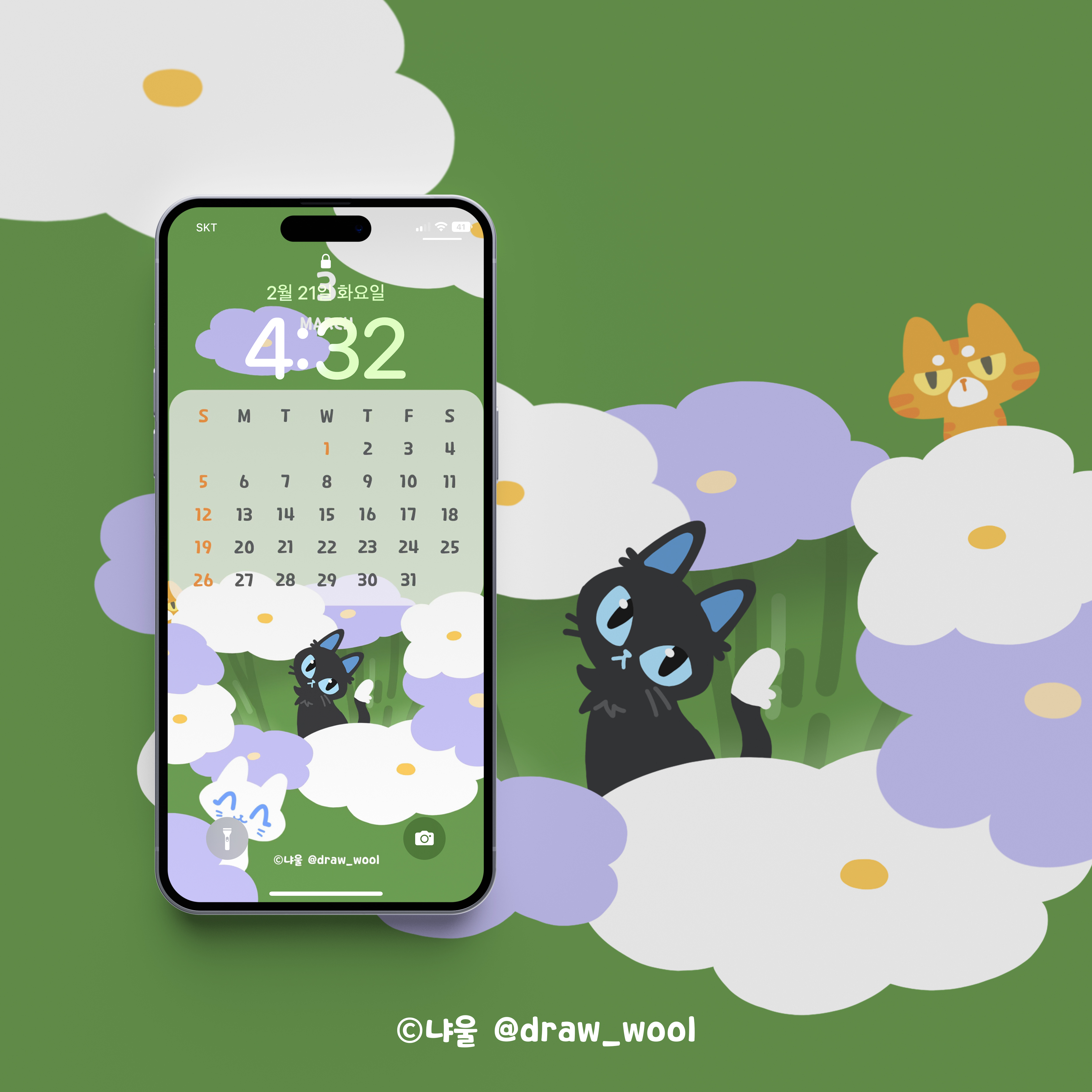 24 Likes, 3 Comments - 냐울 다꾸 스티커 (@draw_wool) on Instagram: "3월 배경화면 공유해요~💙 어쩌다보니 2월달을 건너뛰어버렸네요🤣🤣 🌼3월은 꽃이 피는 계절~🌼 꽃밭에 놀러간 먹물처럼 까만 고양