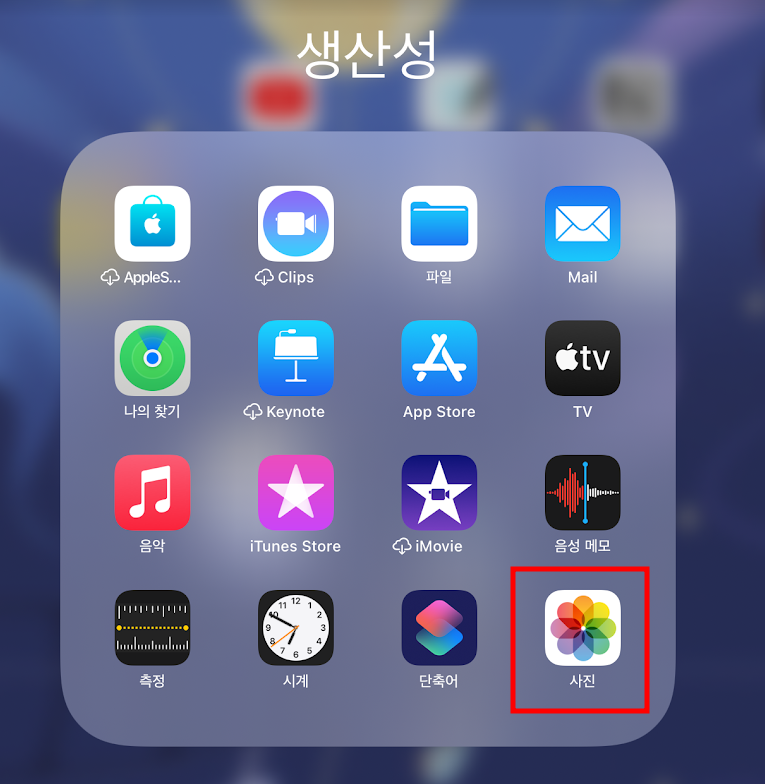 배경화면 이미지가 있는 [사진]어플을 선택합니다.