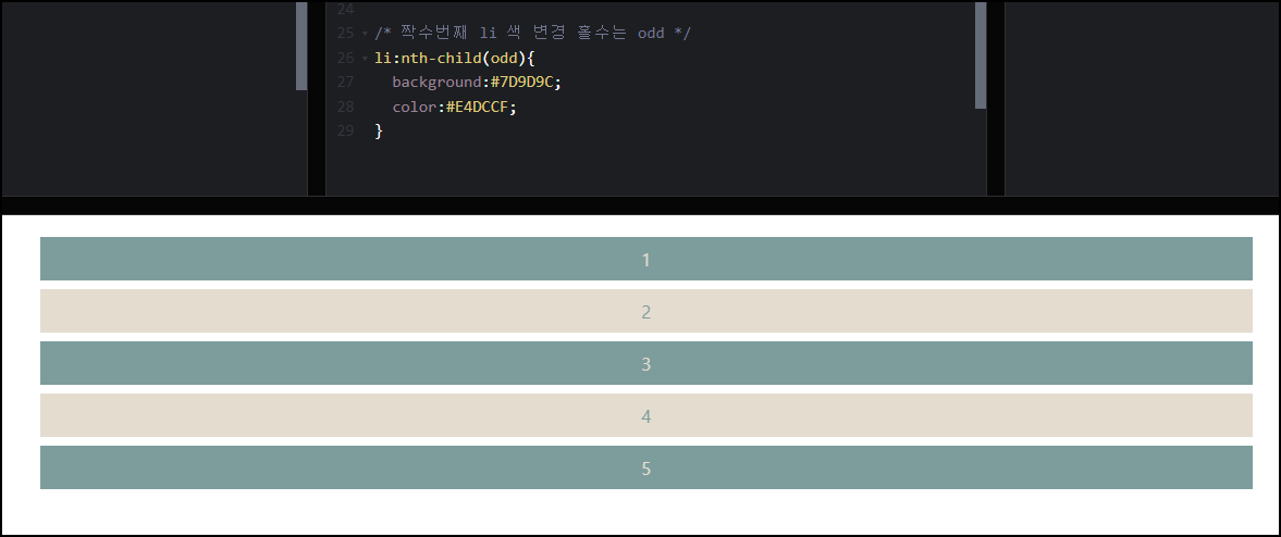 /* 짝수번째 li 색 변경 홀수는 odd */