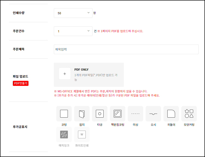 ② 레드프린팅 앤 프레스 주문서 작성