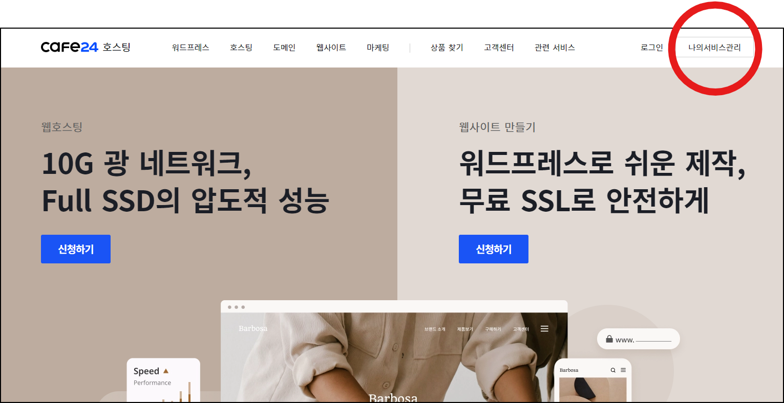 카페 24 호스팅 사이트에 접속하신 뒤