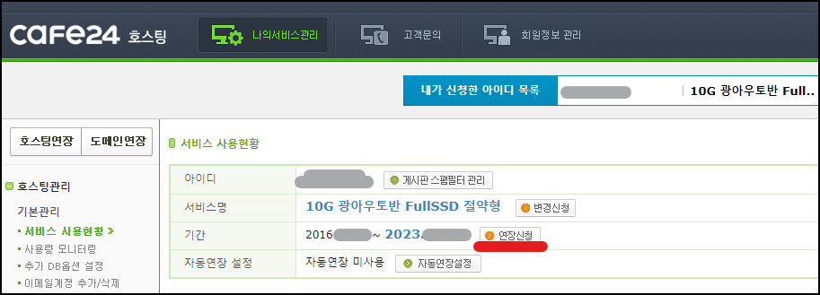 1. 카페24 호스팅 연장 방법