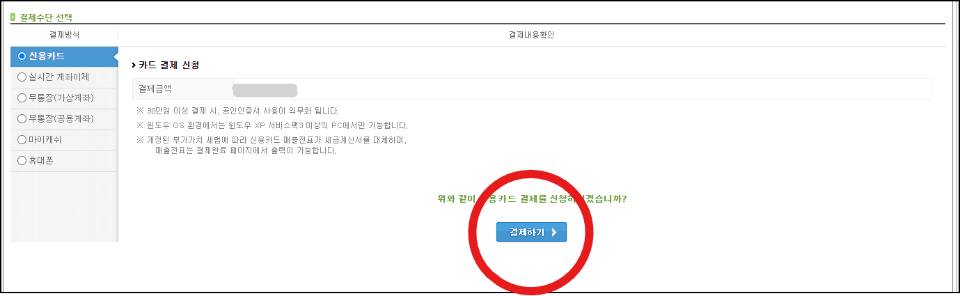 원하는 결제 방식을 선택한 뒤