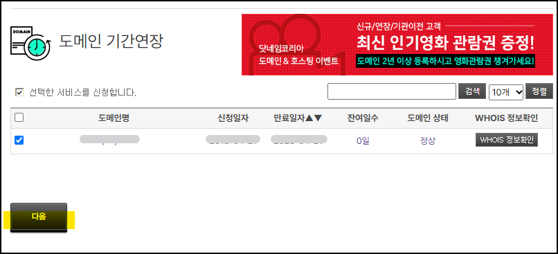 닷네임코리아에서 도메인을 연장해 보겠습니다.