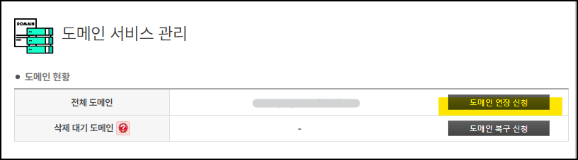 [도메인 연장 신청] 버튼을 클릭합니다.