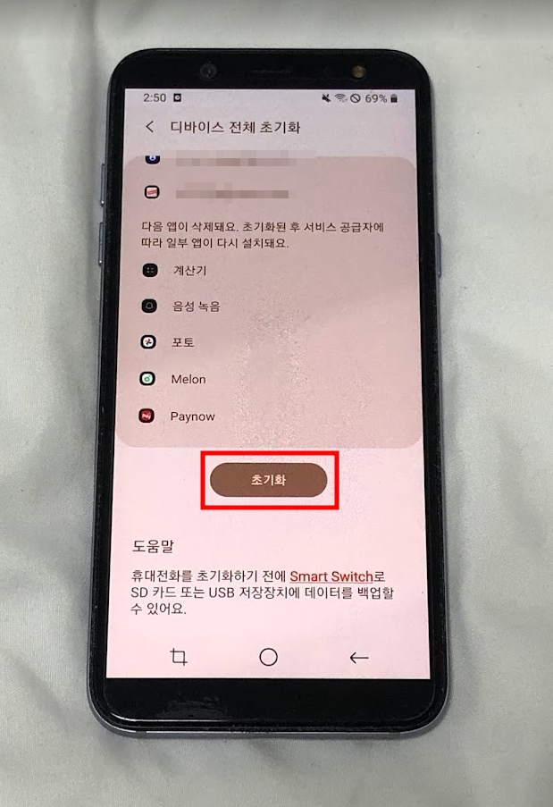 갤럭시 공장초기화를 진행하면