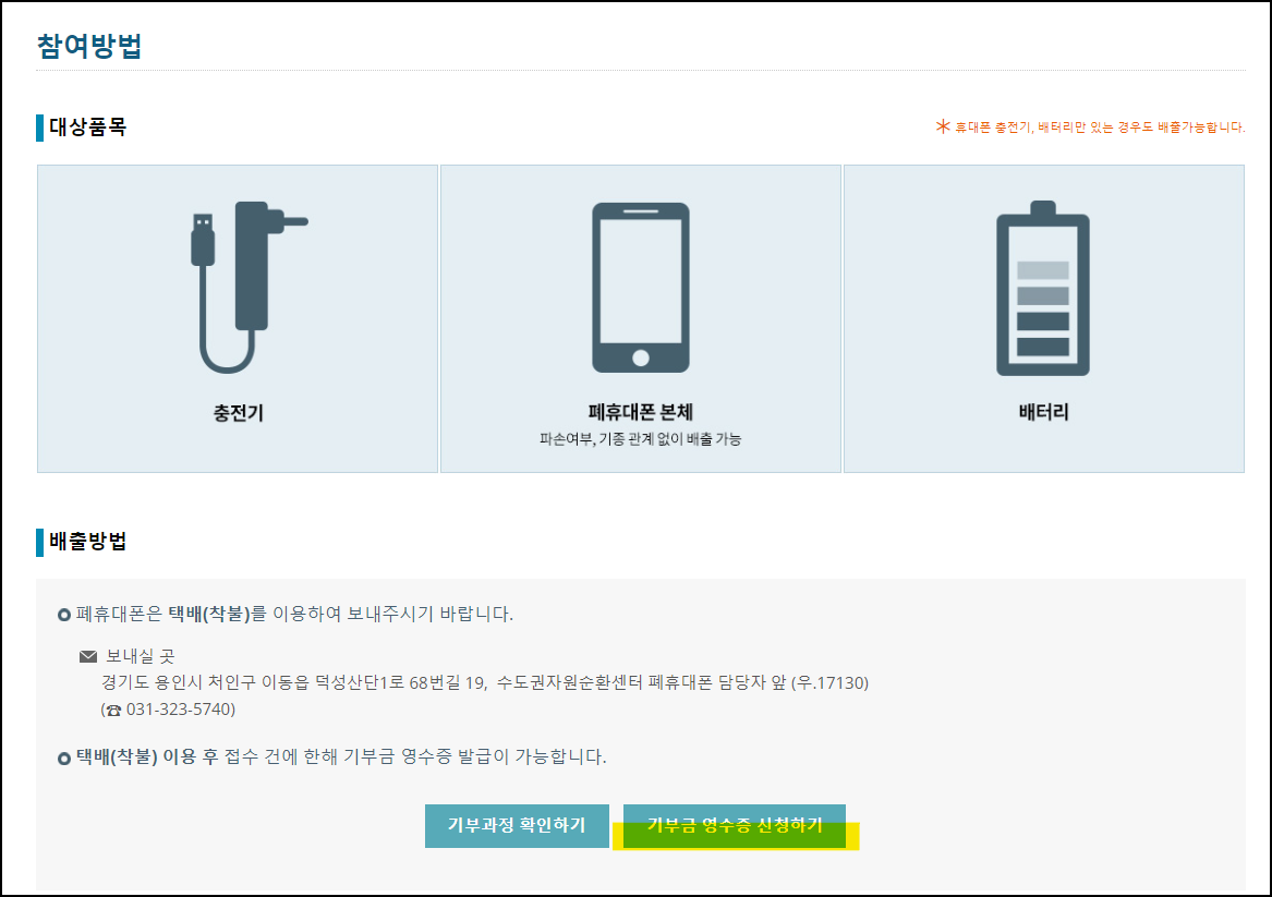 폐휴대폰을 보내는 주소를 확인해 주신 뒤