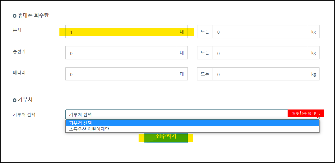 마지막으로 폐휴대폰은 몇 개를 보냈는지