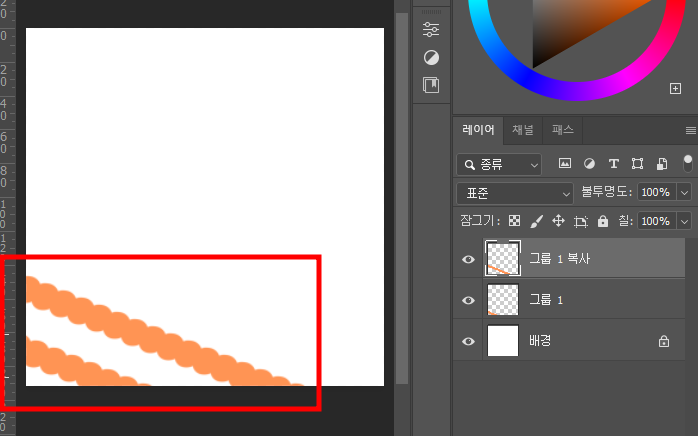 그리고 만들어둔 줄무늬를 캔버스의 구석으로 옮겨줍니다.