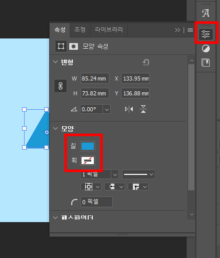 색은 속성 패널에서 바꿀 수 있습니다.