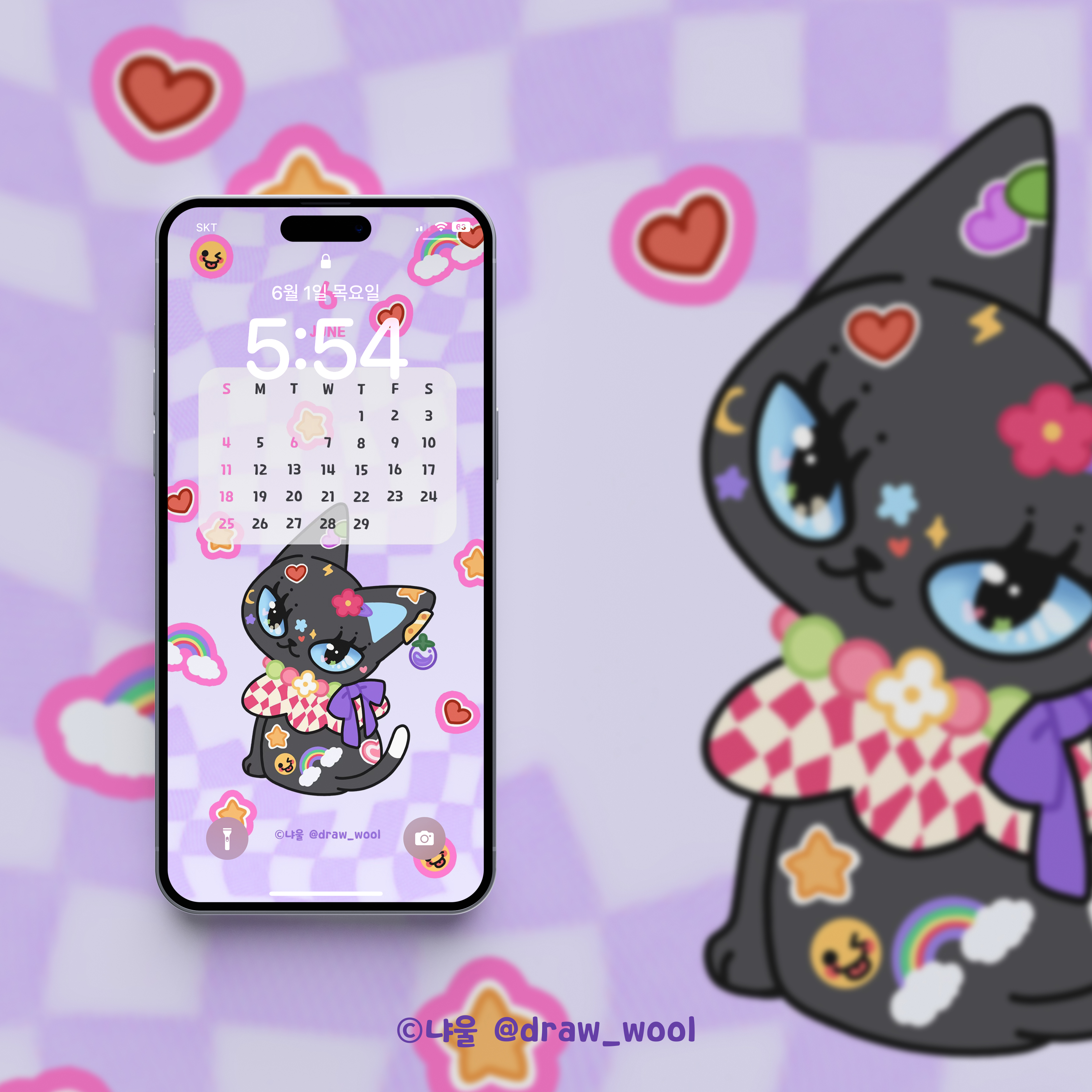 키치 멍무리로 6월 배경화면을 만들었어요.