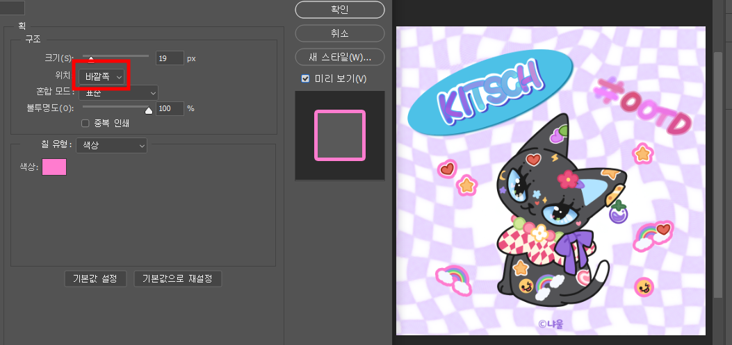아래 [레이어 스타일 아이콘 > 획]을 선택합니다.