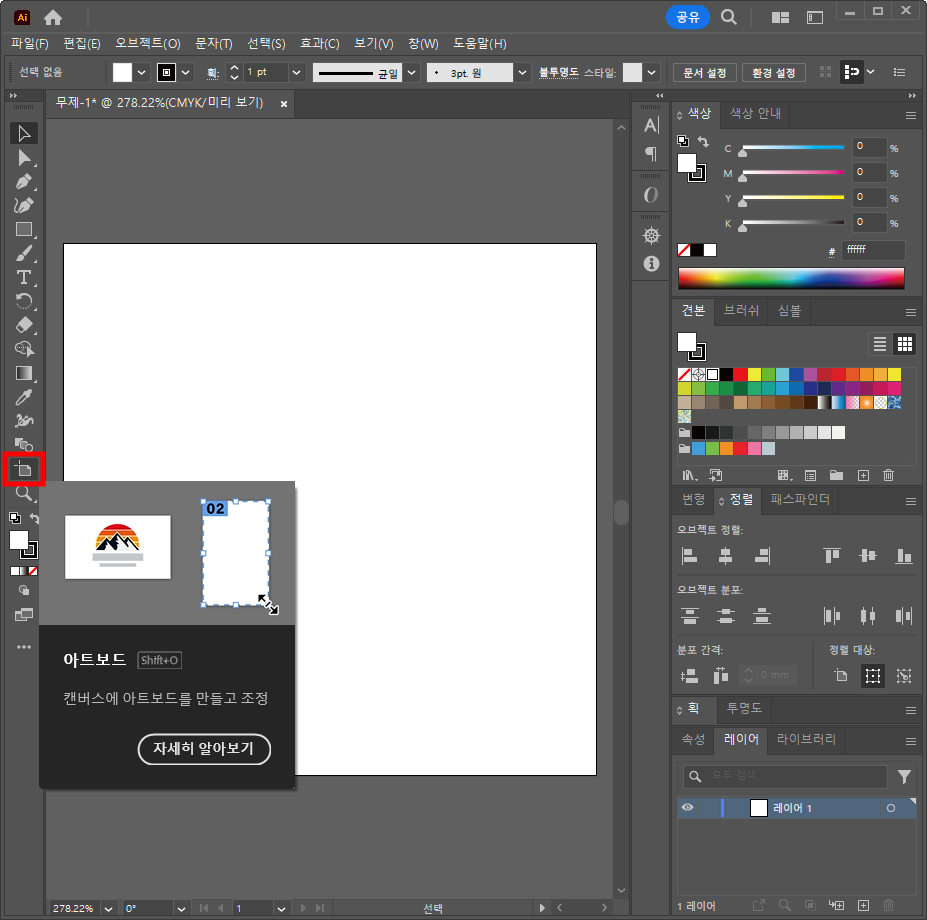 왼쪽 도구바에서 [아트보드]를 선택합니다.