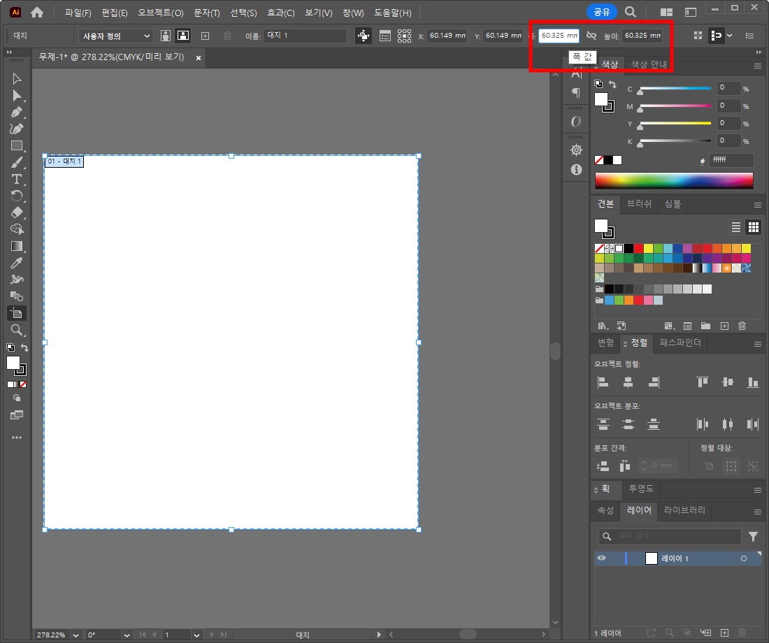 이제 대지 사이즈를 마음껏 설정해 봅시다.