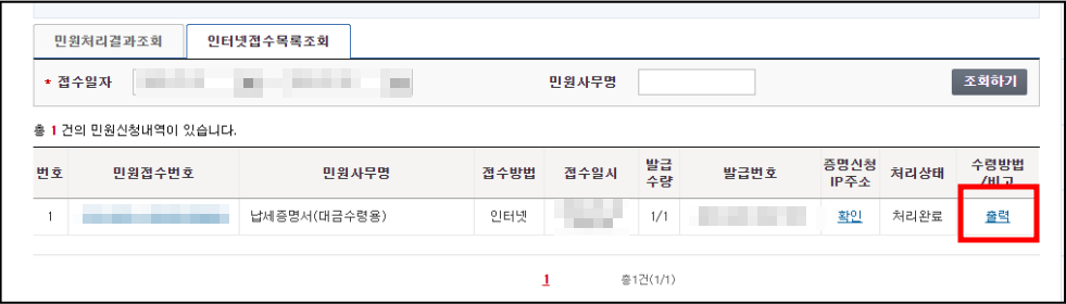 출력 버튼을 클릭해 인쇄해 주시면 됩니다.