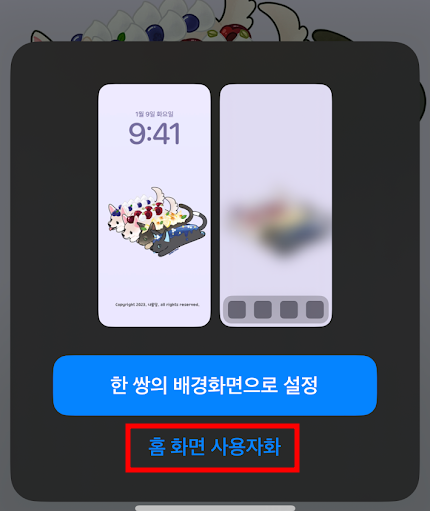 여기서 [홈 화면 사용자화]를 선택합니다.