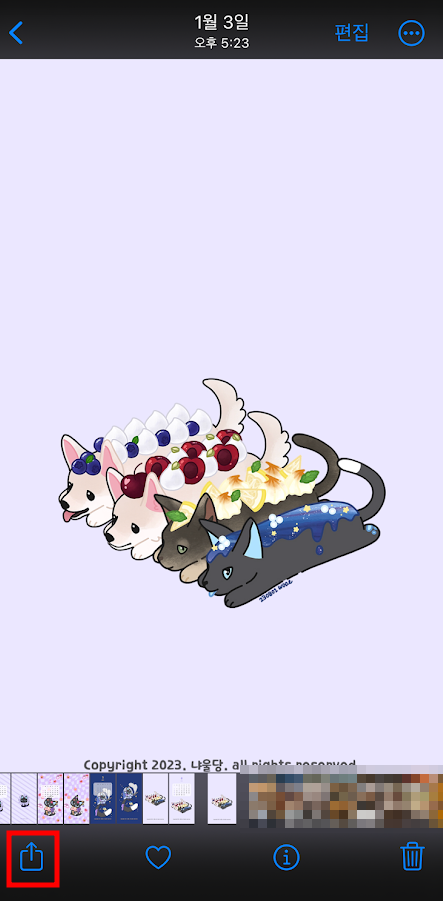 왼쪽 하단의 공유하기 버튼을 클릭!