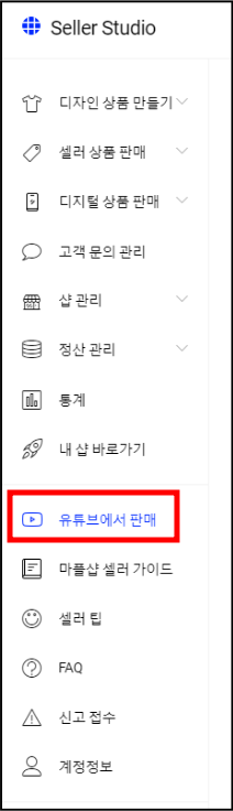 왼쪽 메뉴에서 [유튜브에서 판매]를 클릭합니다.