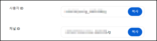 제목 옆에 [채널 ID 확인] 버튼을 클릭하면