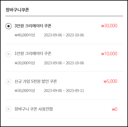 한달정도 사용이 가능한 쿠폰을 금액대별로 넣어줍니다.
