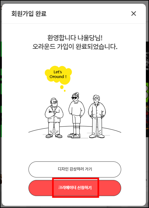 크리에이터 신청하기 버튼을 바로 클릭합니다.